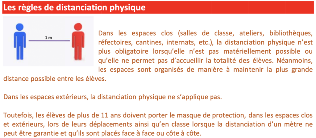 Il apporte des consignes différentes par rapport au mois de juin 2020 après la reprise des cours pour l’ensemble de la population scolaire.