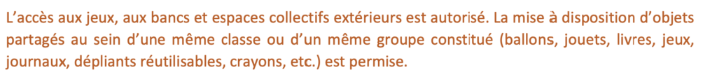Les élèves vont pouvoir utiliser du matériel collectif … livres, jeux et même le crayon que tout le monde mâchonne. Le virus ne survit plus en milieu scolaire. Espérons que le ministère informera l’institut Pasteur de cette découverte majeure.